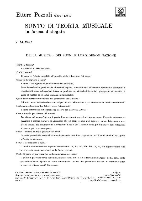 Sunto Di Teoria Musicale In Forma Dialogata I Corso POZZOLI ETTORE