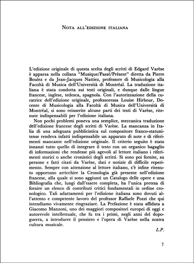 Les écrits d’Edgar Varèse, présentés ici dans une vaste collection d’articles, d’essais, d’interviews, de lettres, sont tous traversés par une idée audacieuse de la musique, par la tension intellectuelle du musicien dominée par le besoin, singulièrement esthétique, de « dépasser les limites ». La collection, ouverte par une rapide autobiographie, s’étend des écrits de sa jeunesse à la conversation peu avant sa mort avec Gunther Schuller, toujours pleine d’éclaircissements vers l’avenir.