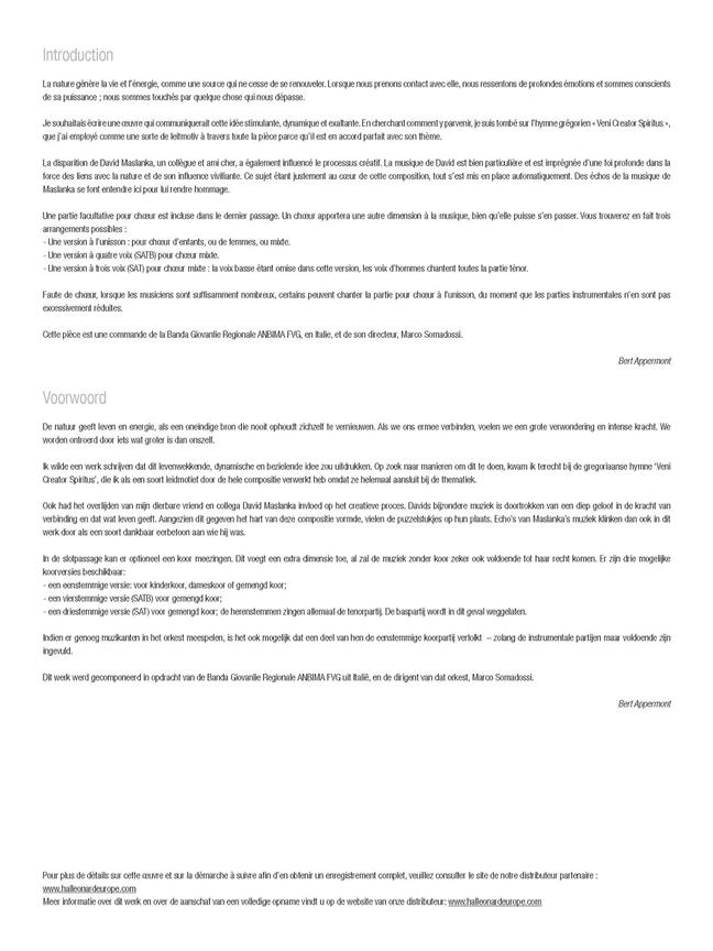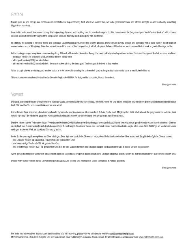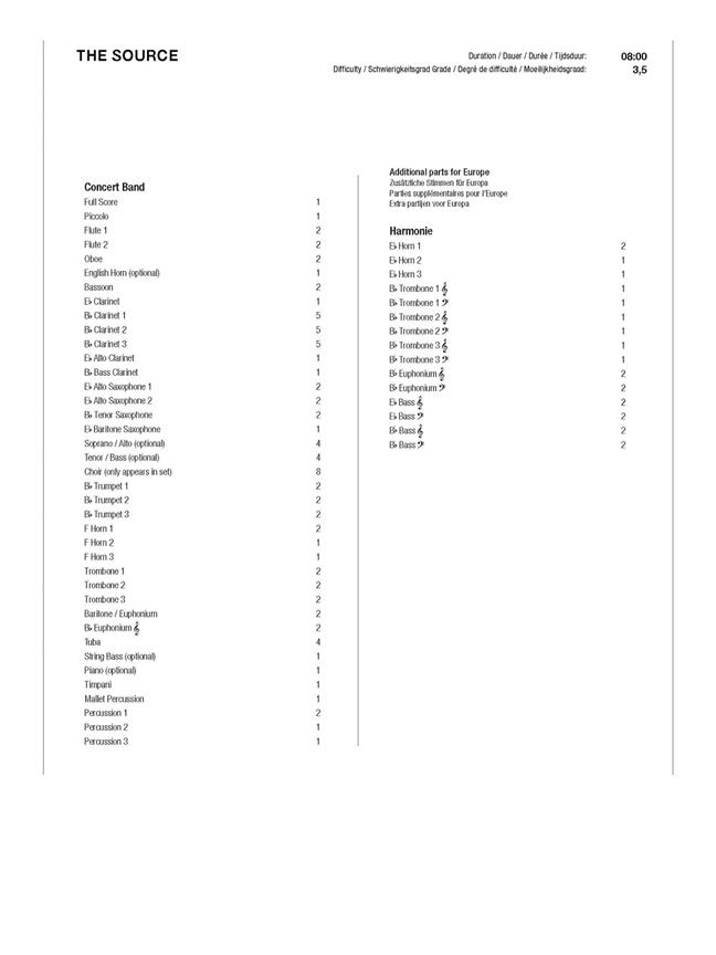 Au cœur de cette pièce se trouvent plusieurs éléments qui ont inspiré le compositeur. Tout d’abord la nature, infinie, inépuisable et source de vie, une force qui nous dépasse. Le compositeur a emprunté un hymne grégorien, «Veni creatoù spiritus», en tant que leitmotiv pour exprimer cette idée. Un second élément est la disparitioù de David Maslanka, un ami cher, honoré dans cette oeuvre par quelques «échos» musicaux. Il y a, la fin, un passage facultatif pour chœur dans plusieurs arrangements possibles. Commande de la Banda Giovanlie Regionale ANBIMA FVG, en Italie, The Source est une pièce impressionnante, exaltante et émouvante.