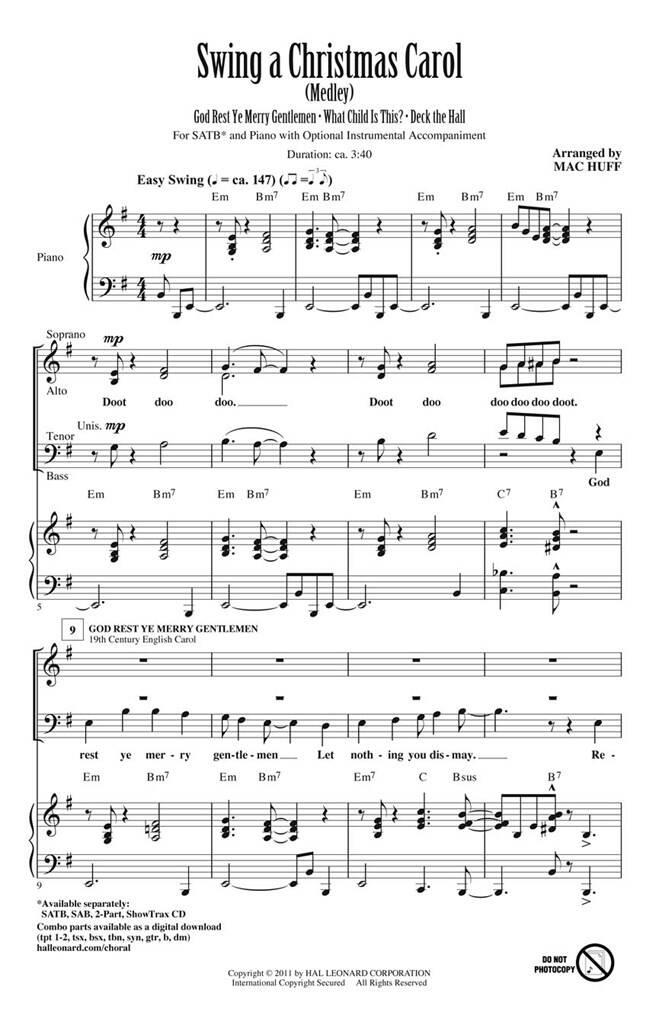 Voici un medley facile et dynamique de 4 minutes de trois chants de Noël préférés dans un style contemporain et frais qui ajoutera de l’étincelle à n’importe quel programme de Noël ! Idéal pour la pop, le jazz et les chorales de concert, il comprend : God Rest Ye Merry, Gentlemen ; Quel enfant est-ce ? ; Décorez la salle. Disponible séparément : SATB, SAB, 2 parties, ShowTrax CD. Pièces combinées disponibles en téléchargement numérique (tpt 1, tpt 2, tsx, bsx, tbn, syn, gtr, b, dm). Durée : environ 3:40.