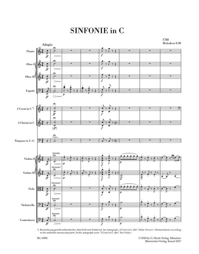 Haydns Symphony in C major Hob. I: 90, dated 1788 in the autograph, belongs to a group of works that he composed between the Paris symphonies (Hob. I: 82-87) and the London symphonies (Hob. I: 93-104). It thus belongs to the last symphonies he wrote before his journeys to England in 1791-92 and 1794-95. Continuing the collaboration between Barenreiter and the G. Henle publishing company regarding Haydns large-scale choral works, operas and symphonies, this edition is based on the G. Henle Complete Edition of the Works of Joseph Haydn. With Symphony No. 90, Barenreiter has now published the complete performance material for all the symphonies from Nos. 82 to 104 as well as several Sturm und Drang symphonies.