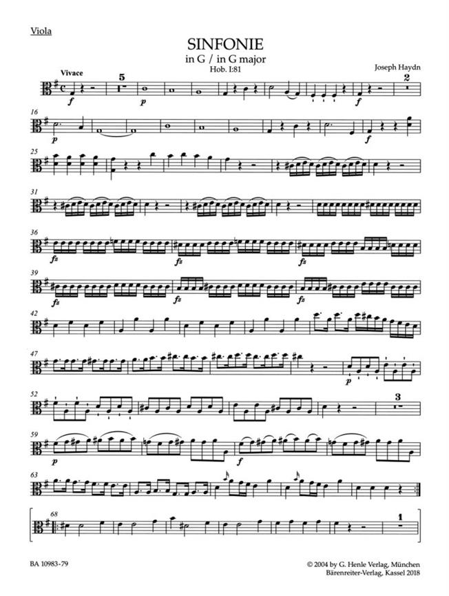 s Symphony in G major Hob. I:81 comes from a series of three symphonies completed in late 1784 (nos. 81, 80 and 79, presumably in that order). No autograph score survives for Hob. I:81, thus our Urtext edition is based on copyists'