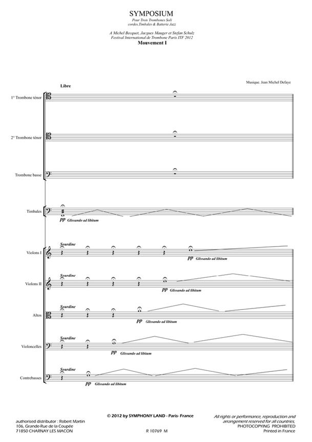 Symposium (2 Trombones Ténors Solo, 1 Trombone Basse Solo Et Orchestre A Cordes, Timpani, Batterie Jazz) DEFAYE JEAN-MICHEL