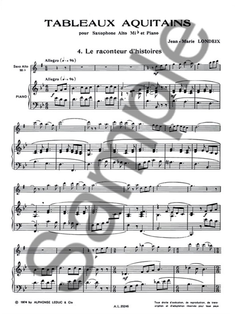 Tableaux Aquitains N04:Le Raconteur D’Histoires Saxophone Mib Et Piano LONDEIX