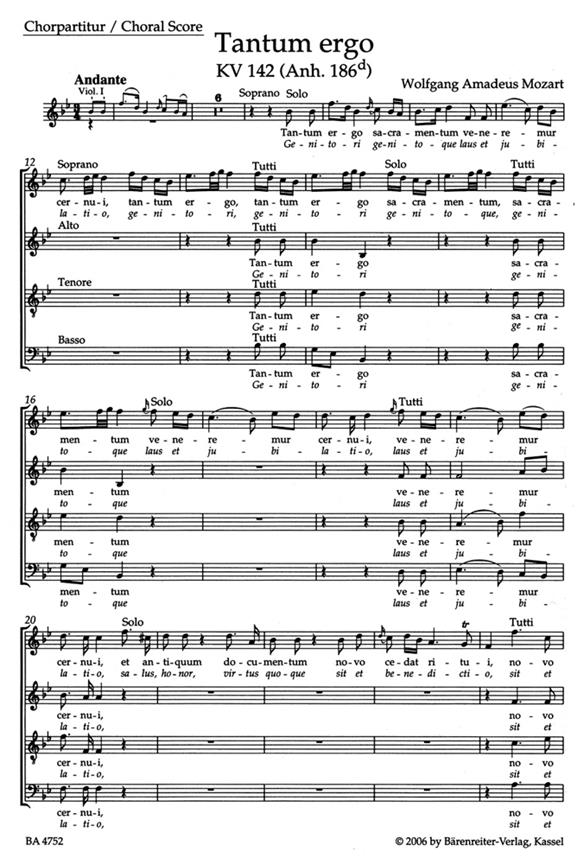 Tantum Ergo MOZART WOLFGANG AMADEUS