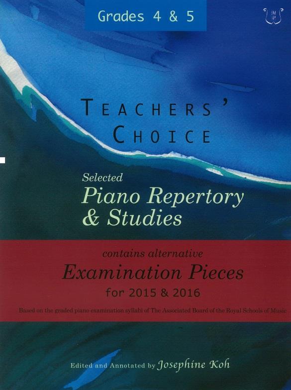Teachers' Choice, Selected Piano Repertory and Studies for grades 4-5 is compiled to provide teachers and students with good options for the 2015 and 2016 ABRSM Piano examinations.