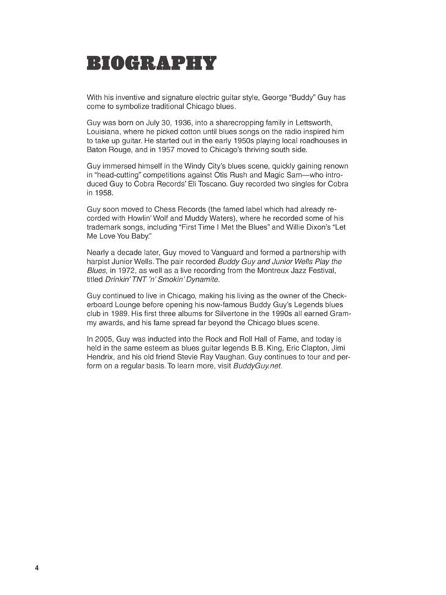 The legendary Hot Licks guitar instruction video series is being made available in book format with online access to all the classic video footage. This book/video provides a unique chance to learn from the greatest Chicago blues guitarist of them all. In these video lessons, Buddy Guy reveals what he learned from such legends as Jimmy Reed, T-Bone Walker, and Lightnin' Hopkins, among others. Includes 40 transcribed examples. You'll learn: 9th chord riffs and licks, playing lead style with fingers, how to emulate slide guitar, boogie riffs, piano-style rhythms and much more.