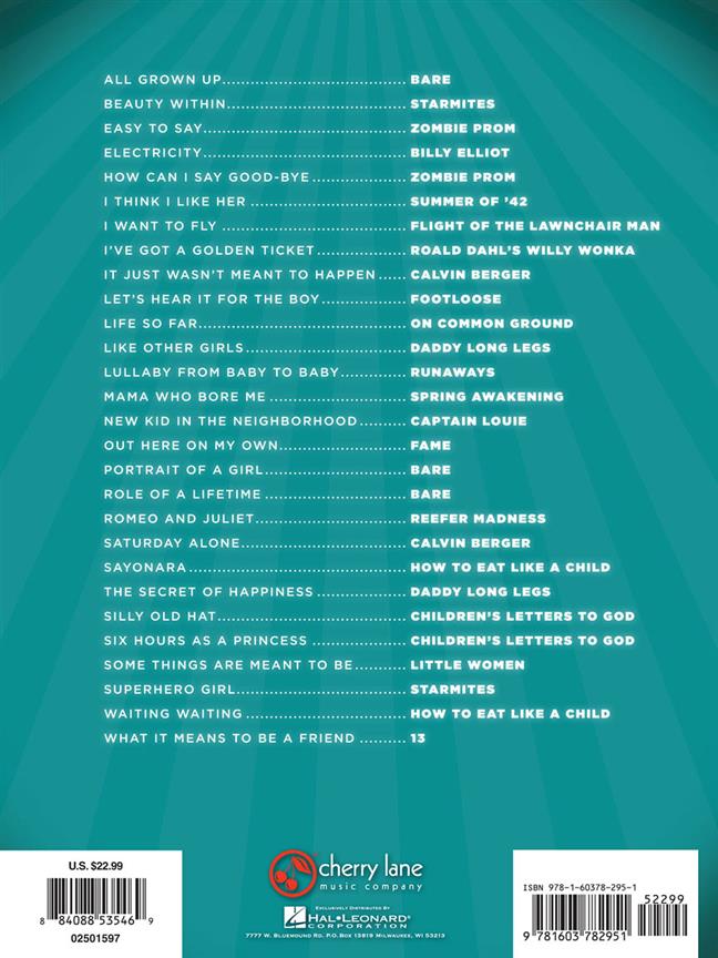 Une collection adaptée à l'âge de 28 favoris théâtre musical à partir de 20 montre que les enfants voudront - et être capable de! - Bien chanter. Les chansons proviennent d'une variété de spectacles contemporains, y compris: 3, Bare, Billy Elliot, Children's Letters to God, Fame, Footloose, How to Eat like a Child, Spring Awakening, Starmite, Zombie Prom ...