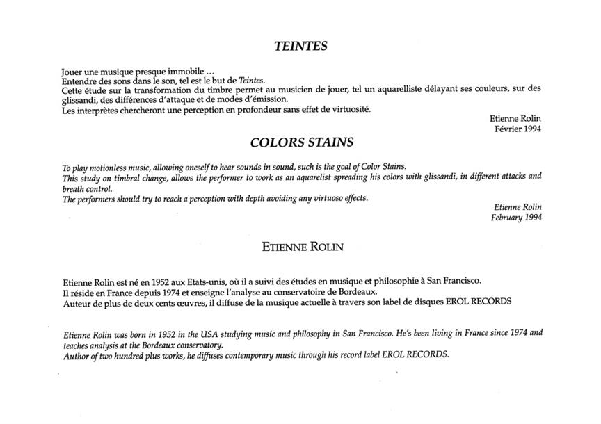 Teintes Pour Deux Saxophones Alto ROLIN ETIENNE