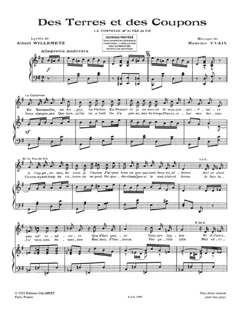 Terres Et Des Coupons Varioustes Chant Seul YVAIN MAURICE