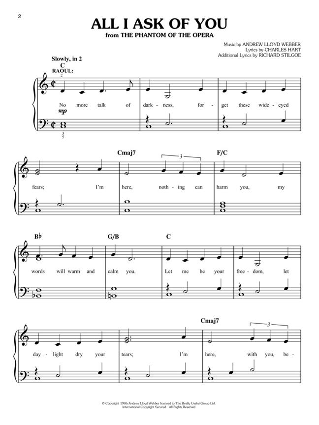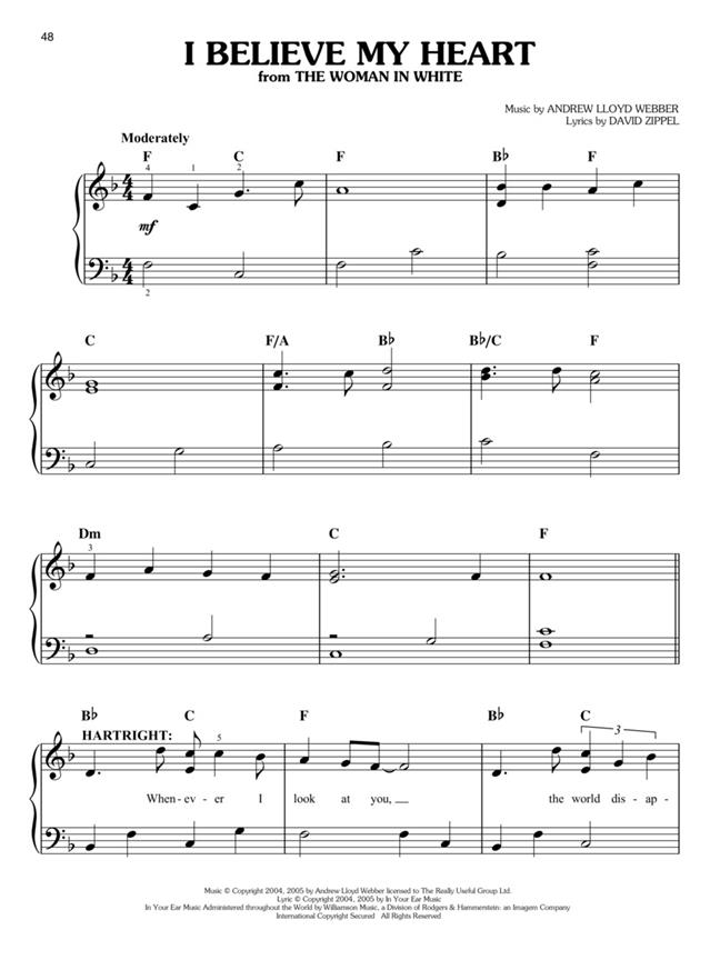 25 des meilleurs titres d'Andrew Lloyd Webber, de " Joseph and the Amazing Technicolor Dreamcoat " à " School of Rock " ! Les chansons sont disponibles pour piano, voix, et guitare, easy piano ainsi que dans une version E-Z-Play-Today.