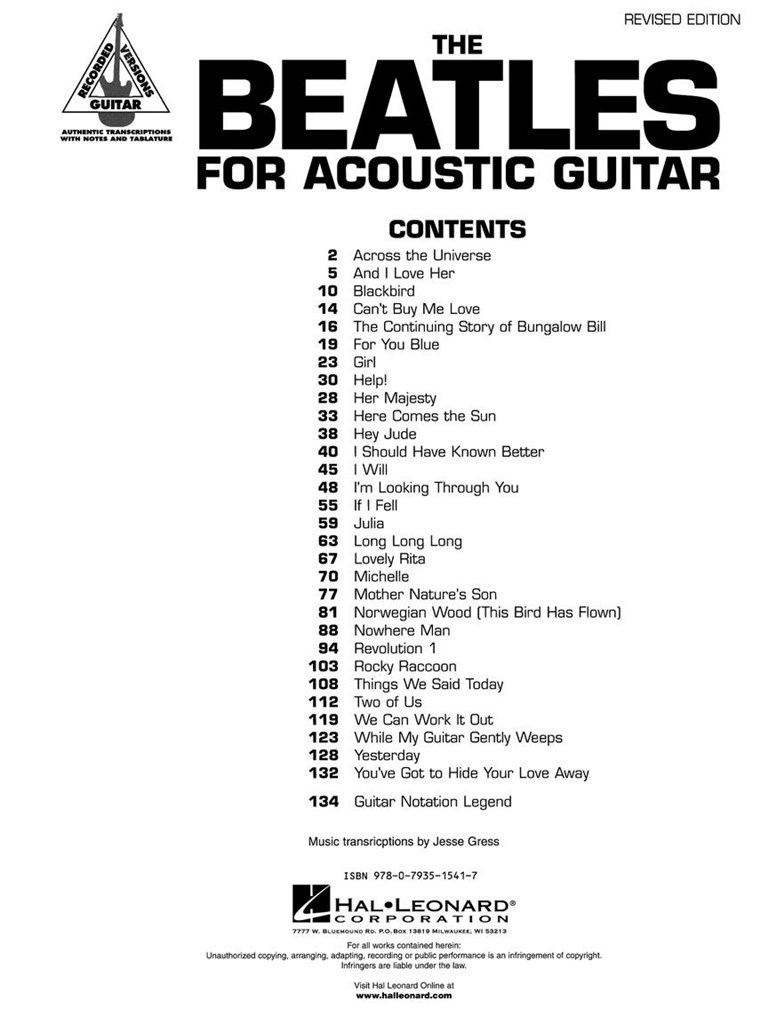 THE BEATLES FOR ACOUSTIC GUITAR – REVISED EDITION BEATLES THE