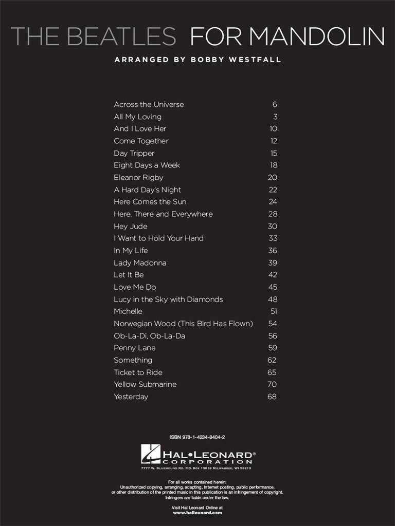The Beatles for Mandolin BEATLES THE