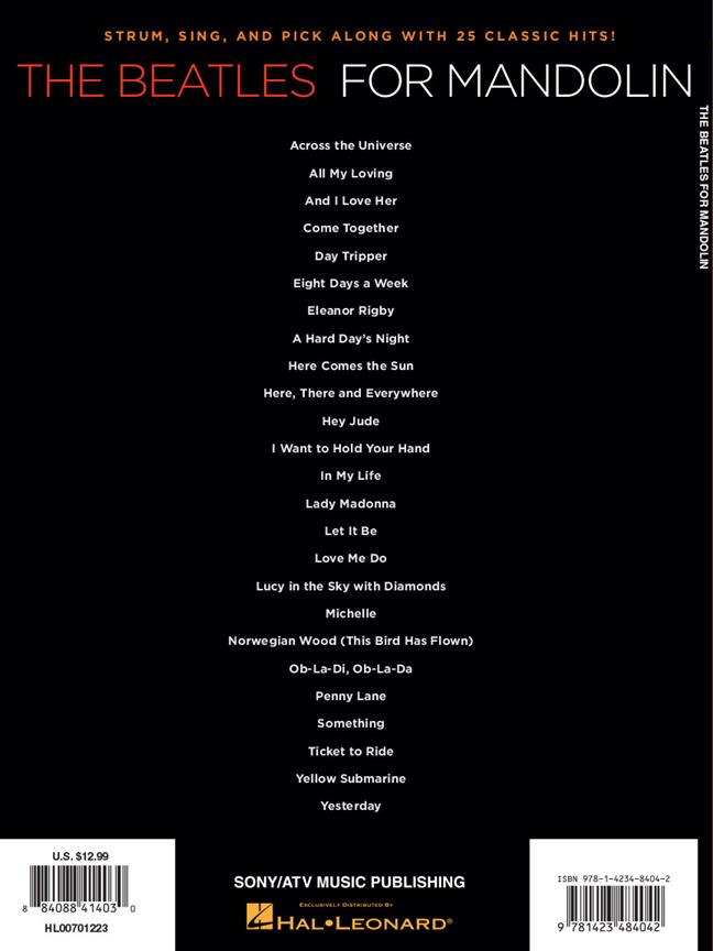 Gratte, chante et gratte avec ces 25 classiques des Beatles arrangés pour mandoline ! Inclut : À travers l’univers • Et je l’aime • Huit jours par semaine • Eleanor Rigby • Voici le soleil • Ici, là et partout • Hey Jude • Dans ma vie • Laisse-le être • Lucy dans le ciel avec des diamants • Michelle • Ob-la-Di, Ob-la-Da • Penny Lane • Quelque chose • Sous-marin jaune • Hier • et plus encore.