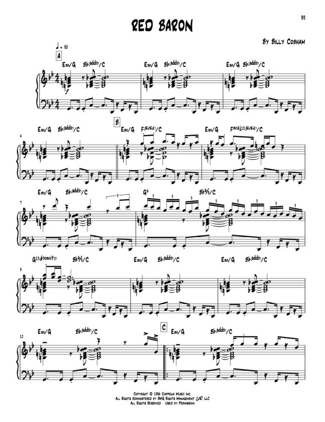 Le légendaire batteur Billy Cobham s’est fait un nom en jouant avec des icônes du jazz comme Miles Davis, George Benson, Horace Silver et le Mahavishnu Orchestra, en plus de son propre groupe Dreams et d’une carrière solo fructueuse. Ce Real Book comprend 16 compositions originales de Cobham dans des arrangements détaillés de feuilles de tête écrites par Cobham lui-même ! Comprend : AC/DC - Vent de travers - La danseuse - Noix de coco desséchées - Bruyère - Le Lis - Lumière au bout du tunnel - Mirage - Microbes de lune - Indirectement parlant - Panama - Le faisan agréable - Radioactif - Baron rouge - Stratus - À la femme de ma vie. Tous les Hal Leonard Real Books présentent des chansons éprouvées dans des arrangements fidèles grâce à la célèbre notation manuscrite facile à lire et à la reliure peignée pratique.