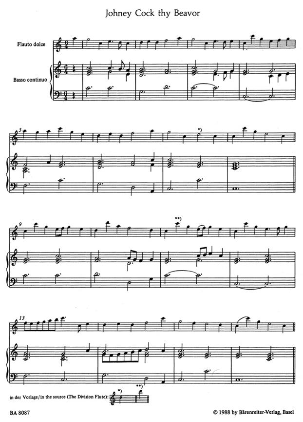 The Division Flute - Johney Cock Thy Beavor - A Division On A Ground By Valentine f or Treble Recorder and Continuo.