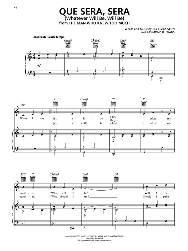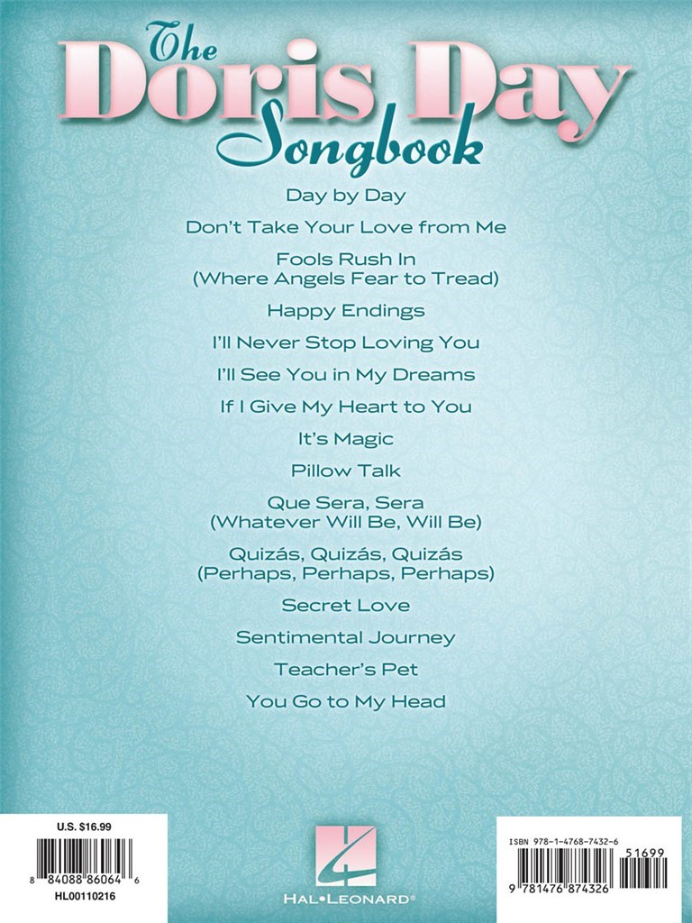Doris Day: Le Songbook de Doris Day dispose de 15 favoris chères de l'actrice qui chante bien-aimée. Savamment disposés partitions pour Piano, Voix et Guitare et dont des classiques comme Sentimental Journey et Que Sera, Sera, les fans de la star pourront faire un voyage dans le passé avec ce merveilleux recueil de chansons de Doris Day.
