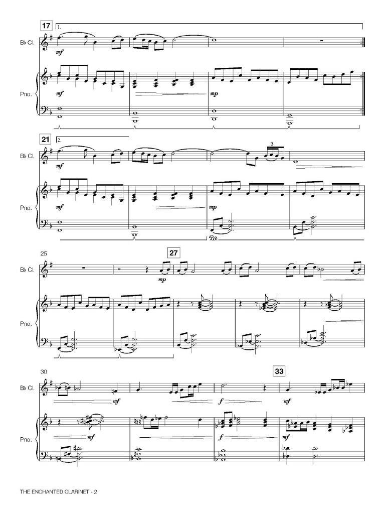 The Enchanted Clarinet est une charmante composition originale de niveau intermédiaire pour solistes de tous âges. C’est une pièce extrêmement abordable pour mettre en valeur l’expression lyrique et un jeu audacieux. Avec ses mélodies tour à tour paisibles, chantantes ou évoquant une fanfare, cette œuvre attrayante vient s’ajouter avec bonheur au répertoire pour clarinette. Elle sera pour vous aussi intéressante qu’agréable à apprendre et interpréter !