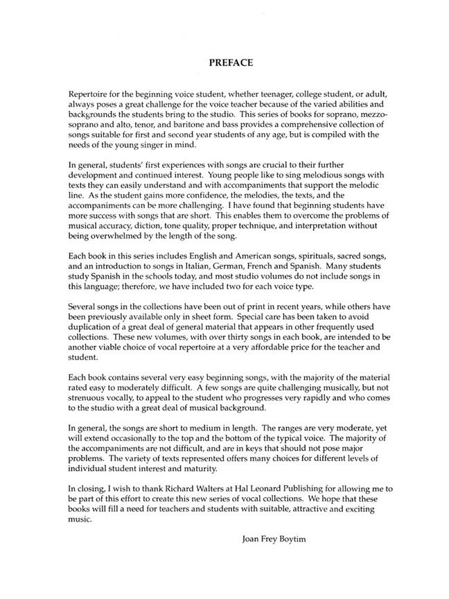 Book/CD package (2 CDs). This is among the most widely used teaching repertoire for singers in the U.S. Over 30 songs in each book, including American and British art songs, folk song arrangements, sacred songs and a sampling of beginning songs in German, Italian, Spanish and French. There is a completely different song selection for each voice type.
