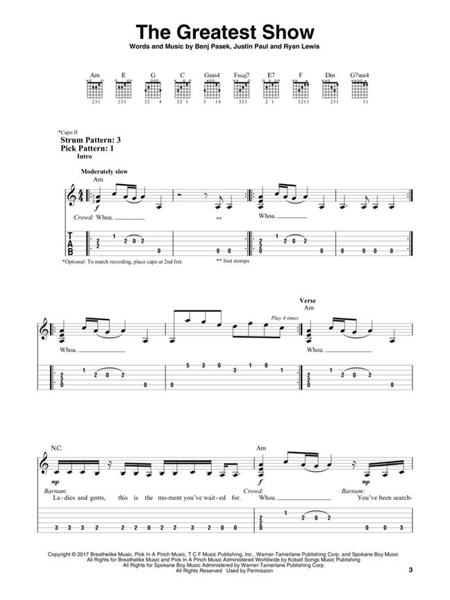 The Greatest Showman Easy Guitar PASEK BENJ / PAUL JUSTIN