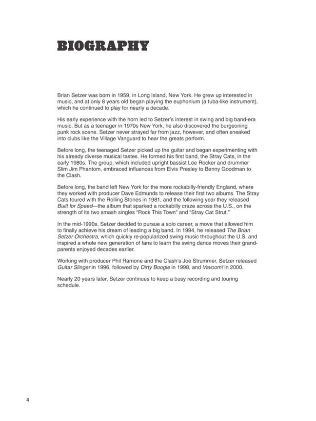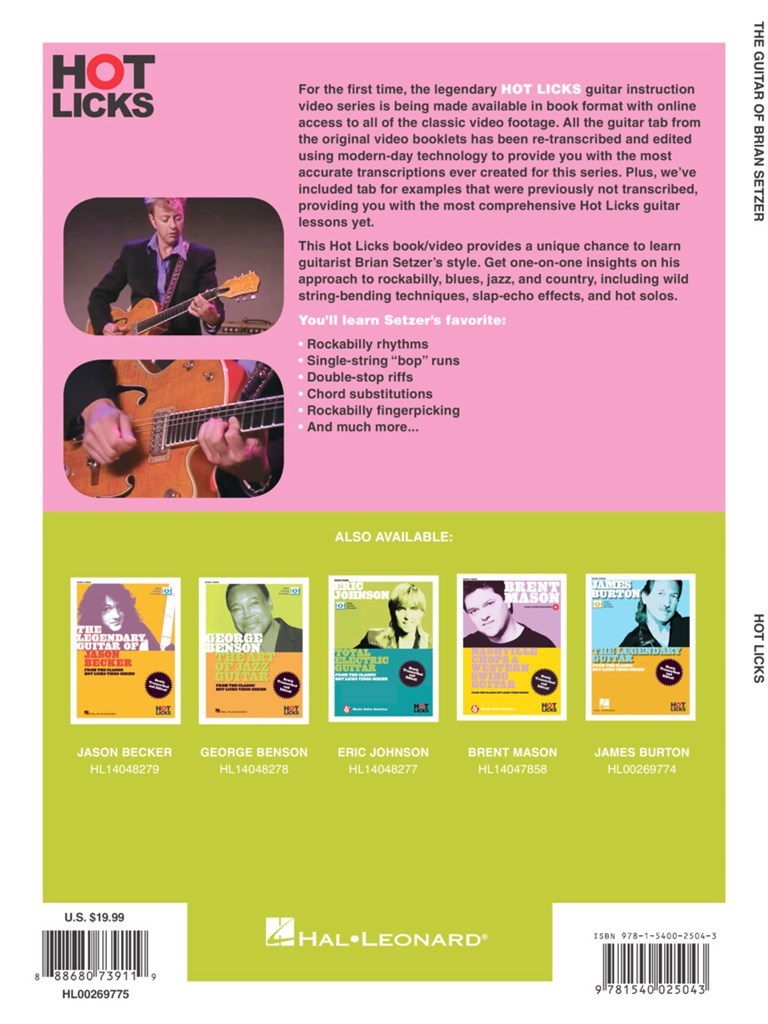 The legendary Hot Licks guitar instruction video series is being made available in book format with online access to all the classic video footage. This volume provides a unique chance to learn from guitarist Brian Setzer. Get one-on-one insights on his approach to rockabilly, blues, jazz, and country, including wild string-bending techniques, slap-echo effects, and hot solos. You'll learn Setzer's favorite: rockabilly rhythms, single-string bop runs, double-stop riffs, chord substitutions, rockabilly fingerpicking and much more.