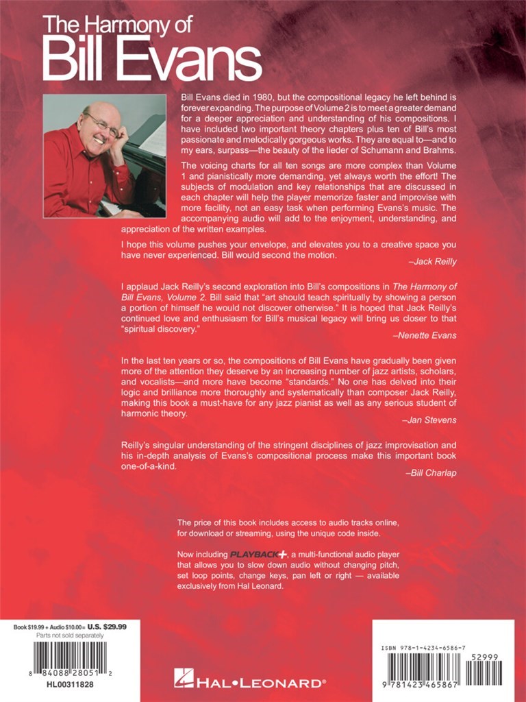 Bill Evans est mort en 1980, mais l'héritage de composition qu'il a laissé est toujours en expansion. En second volume de Reilly, il fournit une meilleure appréciation et compréhension des compositions d'Evans. Il comprend deux chapitres théoriques importants, ainsi que dix des oeuvres les plus passionnés et mélodiquement magnifique de Bill. Les tableaux exprimant pour les dix chansons sont plus complexes que le premier volume et pianistique plus exigeant, mais toujours en vaut la chandelle. Les sujets de modulation et les relations clés qui sont abordés dans chaque chapitre permet au lecteur de mémoriser plus rapidement et d'improviser avec plus de facilité- pas une tâche facile lors de l'exécution de la musique d'Evans.
