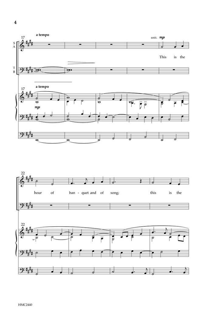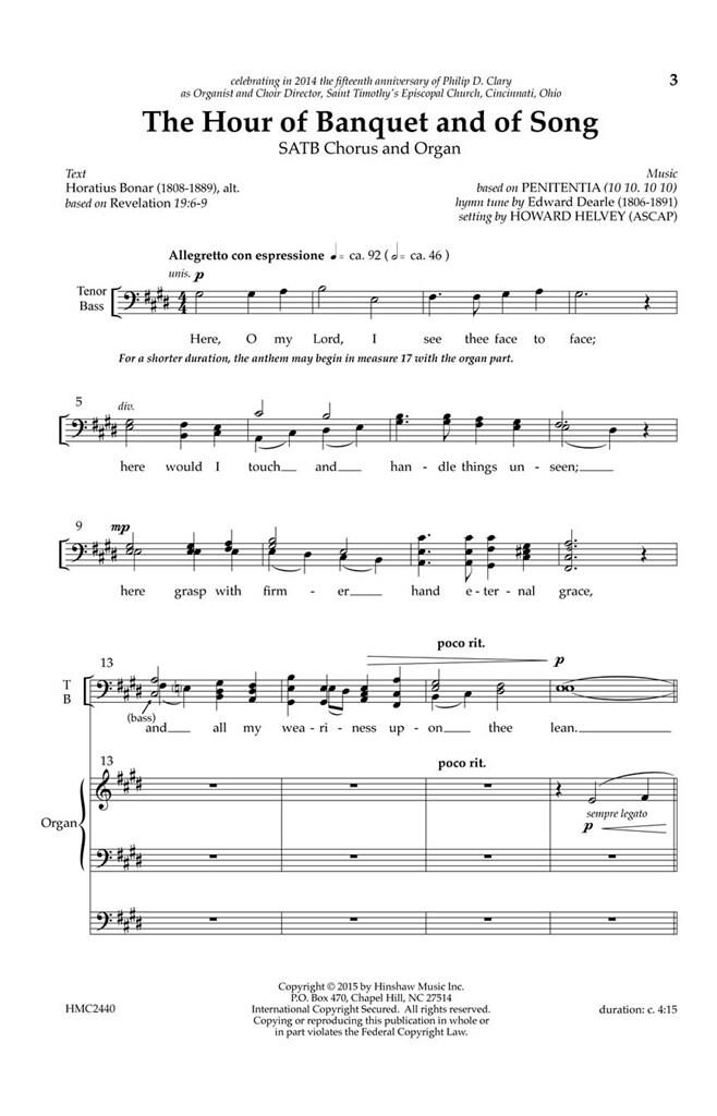 Cet hymne pour la célébration de l’Eucharistie est basé sur l’hymne Penitentia (que l’on trouve dans de nombreux recueils). Sur un texte d’Horatius Bonar et basé sur l’Apocalypse 19, Howard Helvey met en musique l’œuvre pour chœur mixte SATB (avec divisi) et orgue. Essayez-le le dimanche de la communion mondiale.