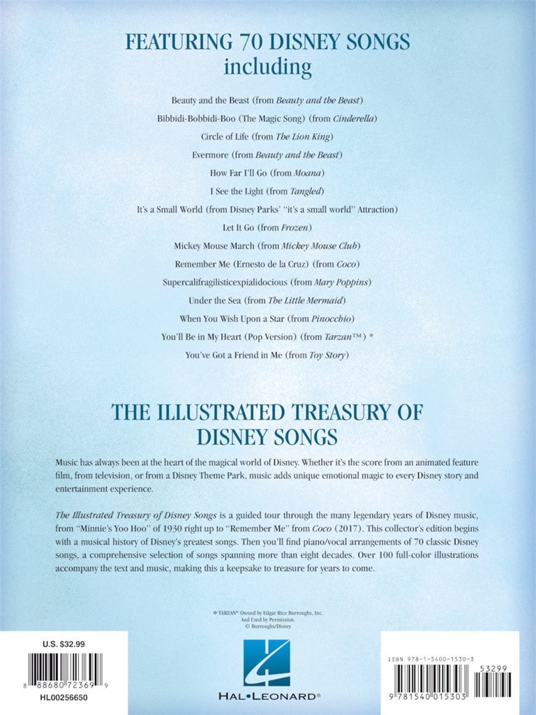 This updated 7th edition coffee table collection is a Disney lover's dream come true! It is a guided tour through the many legendary years of Disney music. The book begins with an extensive musical history of Disney, followed by beautiful piano/vocal arrangements of 70 Disney classics. Printed on deluxe stock with more than 100 stunning full-color illustrations accompanying the text and music, this book is a keepsake to treasure for years to come! Songs include: Bibbidi-Bobbidi-Boo (from Cinderella) - Circle of Life (from The Lion King) - Evermore (from Beauty and the Beast) - How Far I'll Go (from Moana) - I See the Light (from Tangled) - Let It Go (from Frozen) - Under the Sea (from The Little Mermaid) - When You Wish Upon a Star (from Pinocchio) - You've Got a Friend in Me (from Toy Story) - and more.
