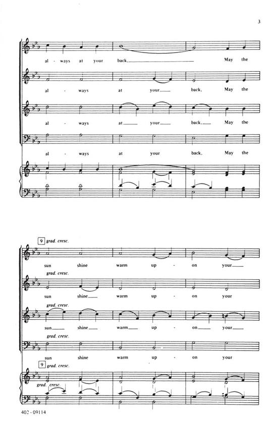 Cette mise en musique émouvante du traditionnel lyrique May the Road Rise to Meet You est disponible séparément : la première fois dans un arrangement mixte à trois voix accompagné et accessible. Disponible séparément : SATB et mixé en 3 parties. Durée de la représentation : environ 1:30