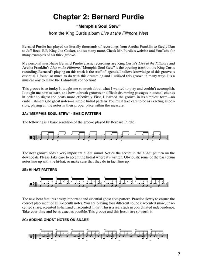 Regardez, écoutez, lisez et apprenez alors que le célèbre professeur de batterie Chuck Silverman vous montre comment fusionner des rythmes funk classiques et des rythmes latins populaires pour créer de nouveaux grooves passionnants. Enseigne les grooves dans le style de Melvin Parker et Bernard Purdie, ainsi que sur les rythmes cascara et mozambicains. Toutes les leçons sont présentées à la fois sur le DVD et dans le livre !