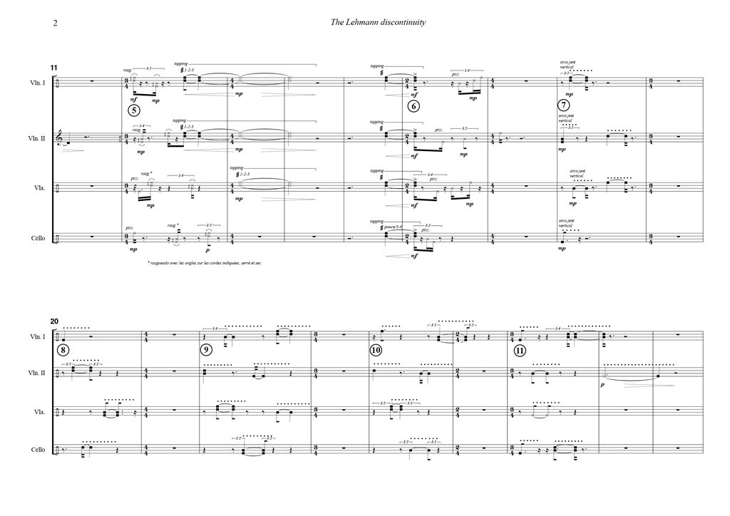 The starting point for the composition of this piece was the musical observation of sound materials that were both tiny and extremely detailed, expressing a strong musical potential. Nano-sounds, materials which belong to a relatively small and hardly perceptible acoustic world which through composition, are projected on a much wider listening scale. This change of perspective, both real and imaginary, takes place through the composition of the score and of the electroacoustic part, but especially through the amplification and diffusion of the instrumental and the electronic sound on the loudspeakers.