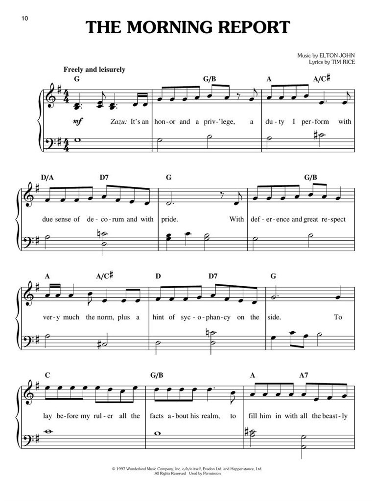 The Lion King /Elton John, Tim Rice – Piano JOHN ELTON / RICE TIM