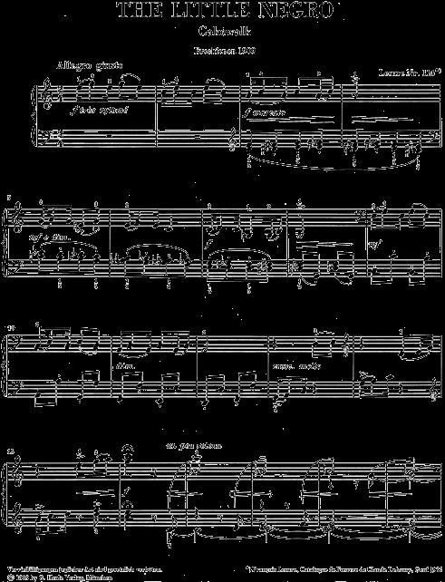 Parmi les courants musicaux auxquels Debussy a occasionnellement réagi dans ses compositions, se trouve aussi le ragtime américain. À côté du Golliwogg’s Cakewalk extrait du Children’s Corner (HN 382), The little Negro fait encore aujourd’hui office de standard pour l’enseignement du piano orienté vers le cross-over. Debussy avait en effet composé cette pièce pour une méthode de piano (celle de Théodore Lack), parue en 1909. Leduc en publia en 1924 une édition séparée dans laquelle, contrairement à la première édition, les mesures 22 à 54 sont répétées. Produisant tout son effet, cette pièce n’est pas trop difficile.