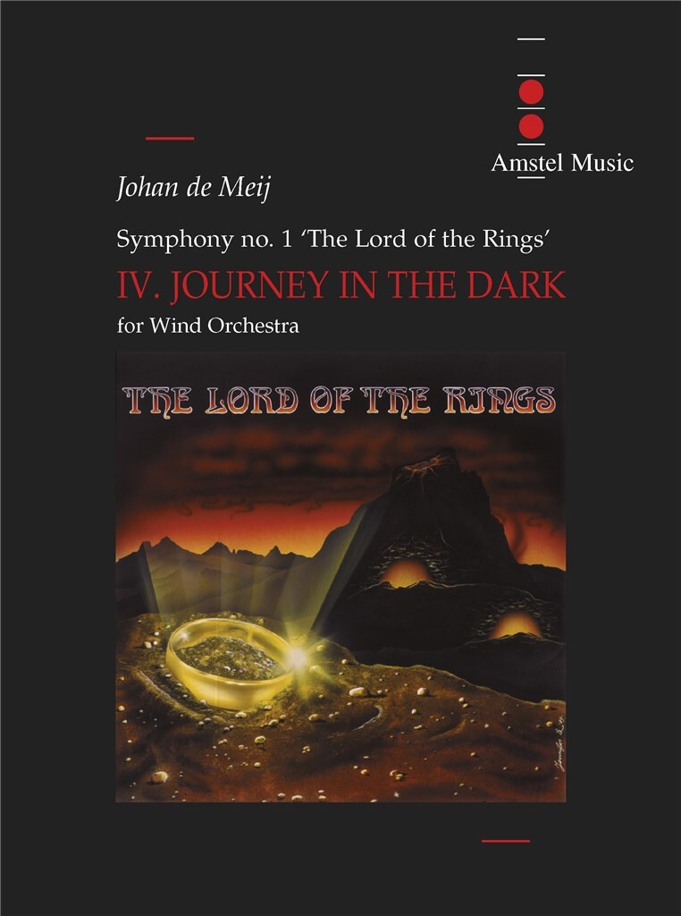 La première symphonie de Johan de meij The Lord où the Rings [Le Seigneur des Anneaux] est basée sur la trilogie romanesque du même nos de J. R. R. Tolkien. Depuis leur parutioù en 1955, ces livres ont fasciné des millions de lecteurs dans le monde entier. La symphonie est composée de cinq mouvements séparés illustrant chacun un personnage où un épisode important de ce grand succès littéraire. L’oeuvre est écrite pour orchestre d’harmonie, avec des parties réservées au saxophone sopranos au bugle et au pianos La quatrième partie décrit le pénible périple mené par le magicien Gandalf travers le labyrinthe des galeries des Mines de la Moria. Le lent pas cadencé et l’angoisse sont exprimés par le rythme monotone des instruments graves et de la percussion. Après une poursuite endiablée par des créatures ennemies, les Orks, Gandalf engage un combat avec un moNotre hideux, le Balrog, et tombe du haut du pont souterrain de Khazad-D m dans un sombre abîme d’une profondeur insondable. Au son d’une morne Marche Funèbre les voyageurs affolés poursuivent leur randonnée la recherche de la seule sortie des galeries de la Mine, le