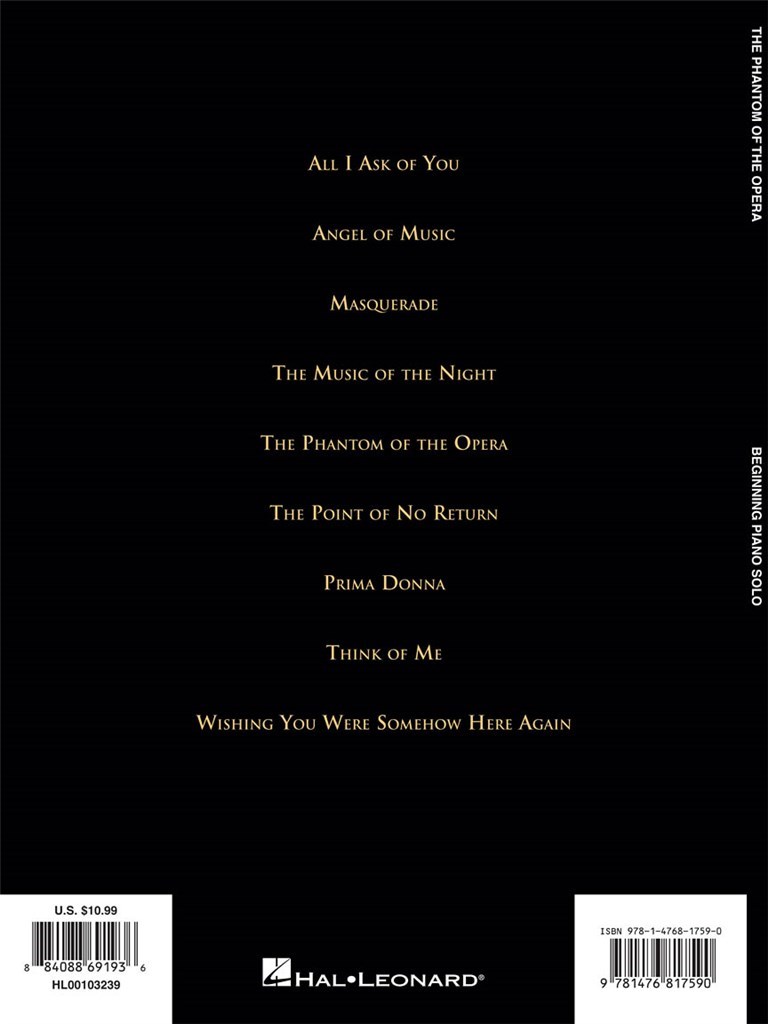 Neuf sélections de la série bien-aimée, The Phantom Of The Opera, disposés comme des solos pour commencer pianistes à jouer.