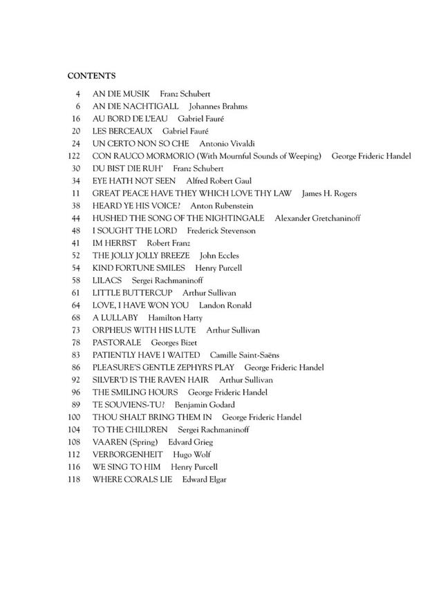 Poursuivant The First Book of Solos et The First Book of Solos - Part II, The Second Book of Mezzo-Soprano/Alto Solos contient plus de 30 chansons qui demandent un peu plus de tessiture vocale et de sophistication musicale, mais qui restent tout de même clairement du matériel étudiant.