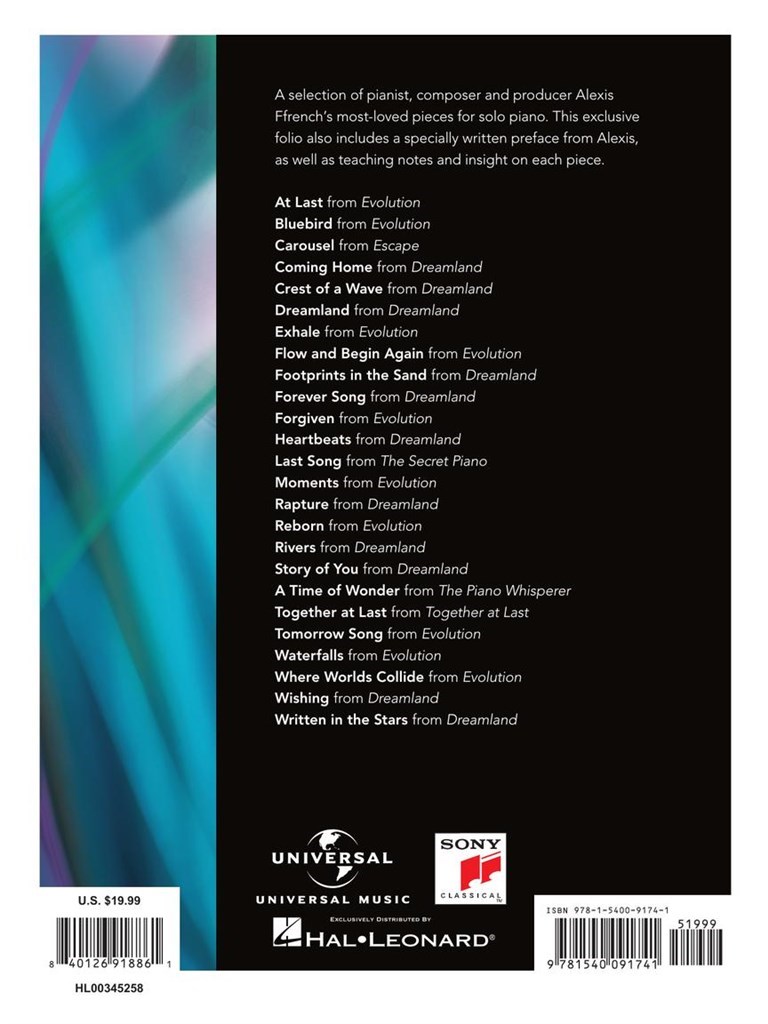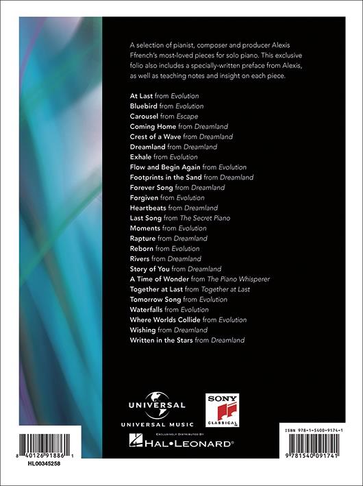 A selection of pianist, composer and producer Alexis Ffrench’s most-loved pieces for solo piano. This exclusive folio also includes a specially written preface from Alexis, as well as teaching notes and insight on each piece. Includes pieces from Alexis’ best-selling albums Evolution and Dreamland as well as pieces from his widely-popular back catalogue.