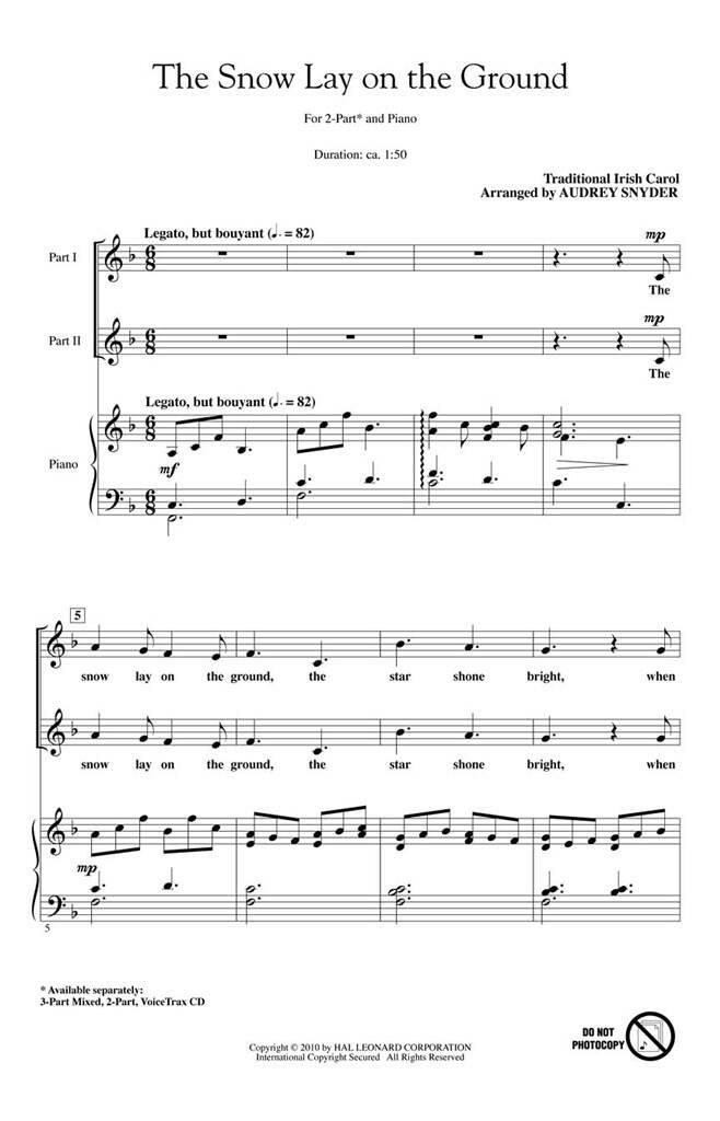 Voici un arrangement délicieux du chant traditionnel irlando-anglais, particulièrement adapté aux jeunes ensembles. Avec une attention particulière aux tessitures, cette œuvre s’adapte à l’évolution de la voix et sera un excellent ajout aux concerts de Noël. Disponible séparément : mixé en 3 parties, en 2 parties, VoiceTrax CD. Durée : environ 1:50.