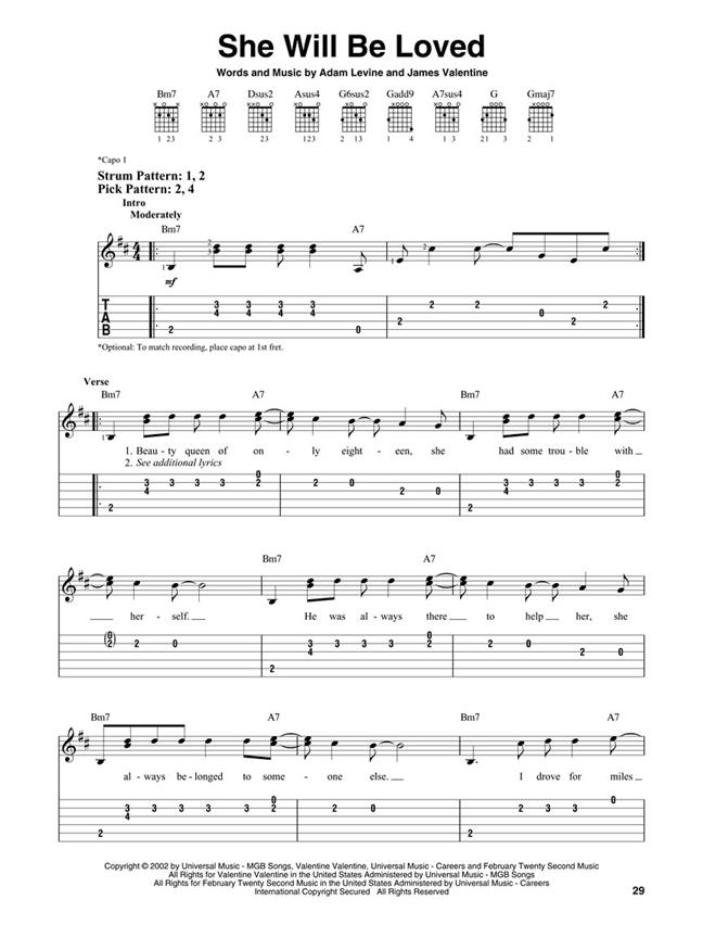 A dozen of the biggest hits by this uber-popular band arranged for easy guitar with notes and tablature. Includes: Animals - Daylight - Love Somebody - Makes Me Wonder - Moves like Jagger - One More Night - She Will Be Loved - Sugar - Sunday Morning - This Love - Wake up Call - Wont Go Home Without You.