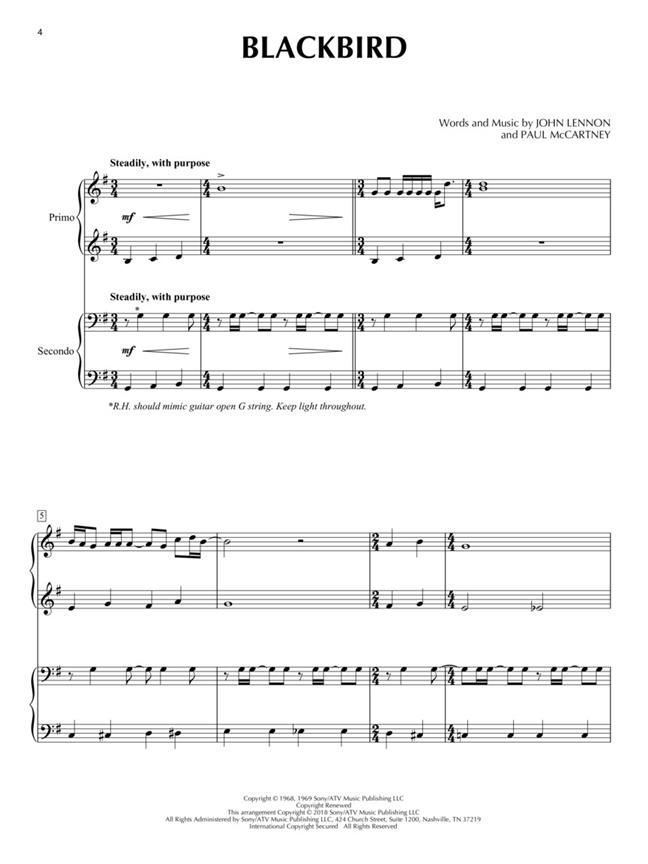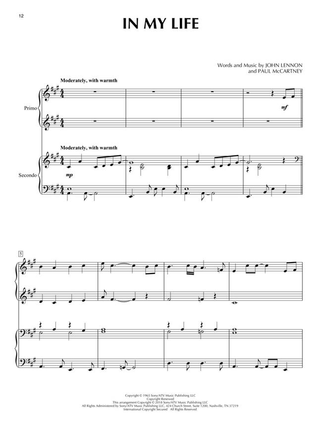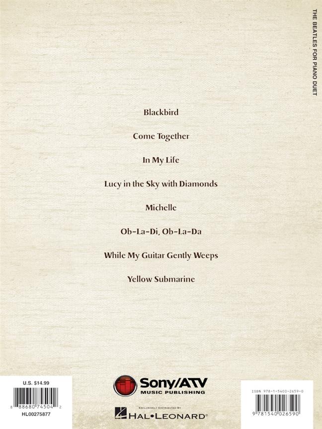 Eight great Beatles' songs, arranged for piano duet! Easily sightreadable for pianists at the intermediate level.