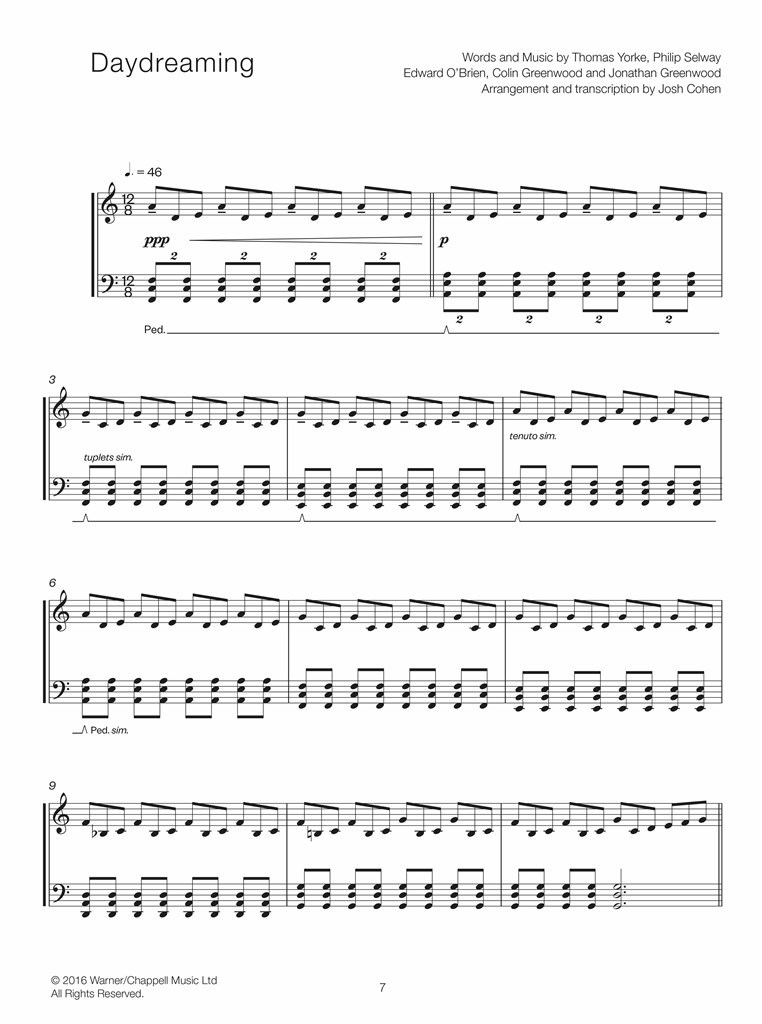 Josh Cohen: Radiohead for Solo Piano is a beautifully produced collection of some of Radiohead's best-loved songs, arranged for intermediate to advanced piano solo (with lyrics) by YouTube pianist Josh Cohen. These exclusive transcriptions were made popular by Cohen's YouTube channel and the book includes a playing guide and introduction from the arranger. This band-approved book features a specially designed cover and mono prints throughout from Radiohead artist Stanley Donwood.