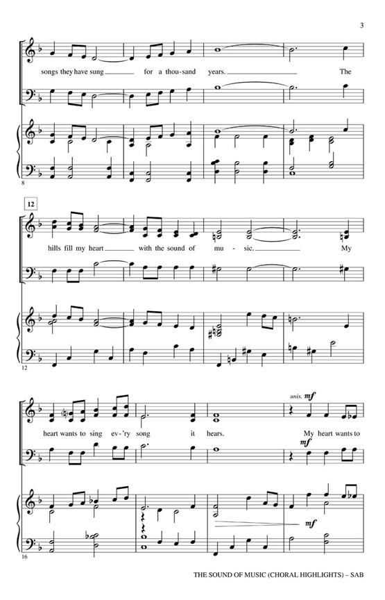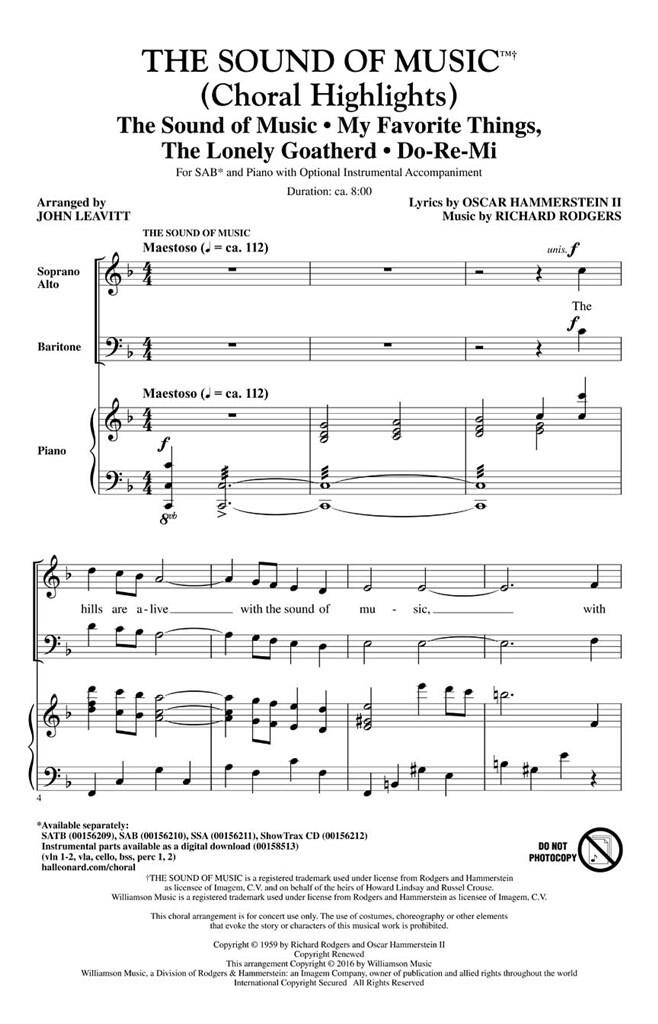 Quatre favoris du classique de Broadway La Mélodie du bonheur se combinent pour offrir un ajout charmant aux programmes choraux de tous niveaux dans ce délicieux medley de 8 minutes. Parmi ses chansons figurent : Do-Re-Mi, The Lonely Goatherd, My Favorite Things, The Sound of Music.