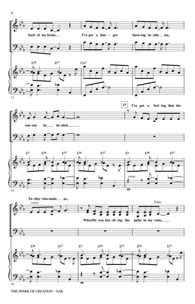 Extraite de Children of Eden du compositeur de Broadway Stephen Schwartz, cette chanson raconte l’histoire de la rencontre d’Ève avec le serpent. Vibrant d’énergie, la sélection capture la créativité et l’imagination inhérentes à tous les humains. Disponibles séparément : SATB, SAB, SSA, ShowTrax CD. Pièces combinées disponibles en numérique (fl, ob, hn, syn, gtr, b, dm) Durée : environ 2:20.