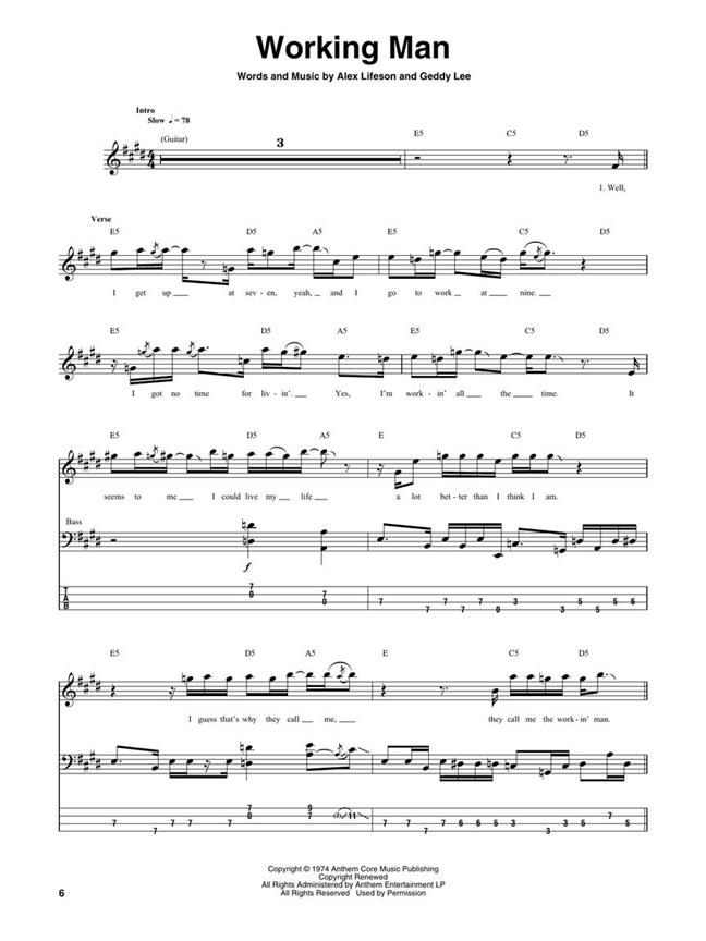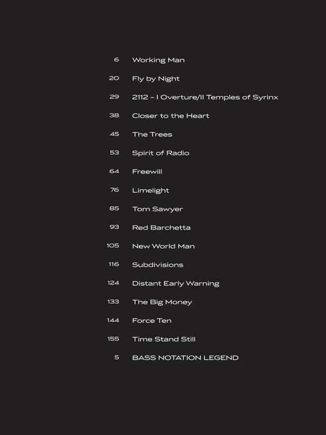 Learn to play 17 Rush classics by studying the note-for-note bass transcriptions of every note Geddy Lee played on 17 Rush classics. The transcriptions are presented in notes and tab and also include lyrics