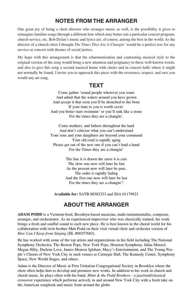 The Times They Are A-changin’ DYLAN BOB