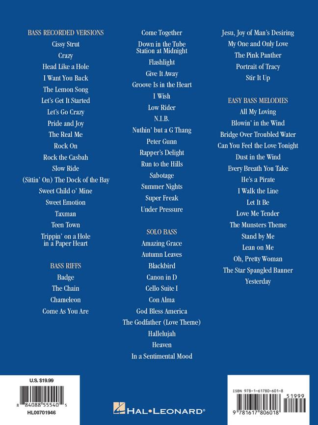 Ce recueil propose une variété d'arrangements et de transcriptions pour 70 chansons - allant de la note exacte-à-note transcriptions et des mélodies faciles à basse arrangements basse solo et des riffs de basse. Peu importe le type d'arrangement que vous préférez, vous trouverez de nombreux hits à jouer dans cette collection!