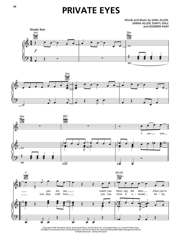 18 chansons arrangées pour piano, voix et guitare, correspondant à la compilation de l’album pour ces nouveaux membres du Rock & Roll Hall of Fame. Comprend : Homme de famille · Je ne peux pas accepter ça (impossible) · Kiss on My List · Mangeur d’hommes · Méthode de l’amour moderne · Déconnectés · Détectives privés · Fille riche · Dire que ce n’est pas le cas · Tu Fais Mes Rêves · Tu as perdu ce sentiment d’amour · et plus encore.