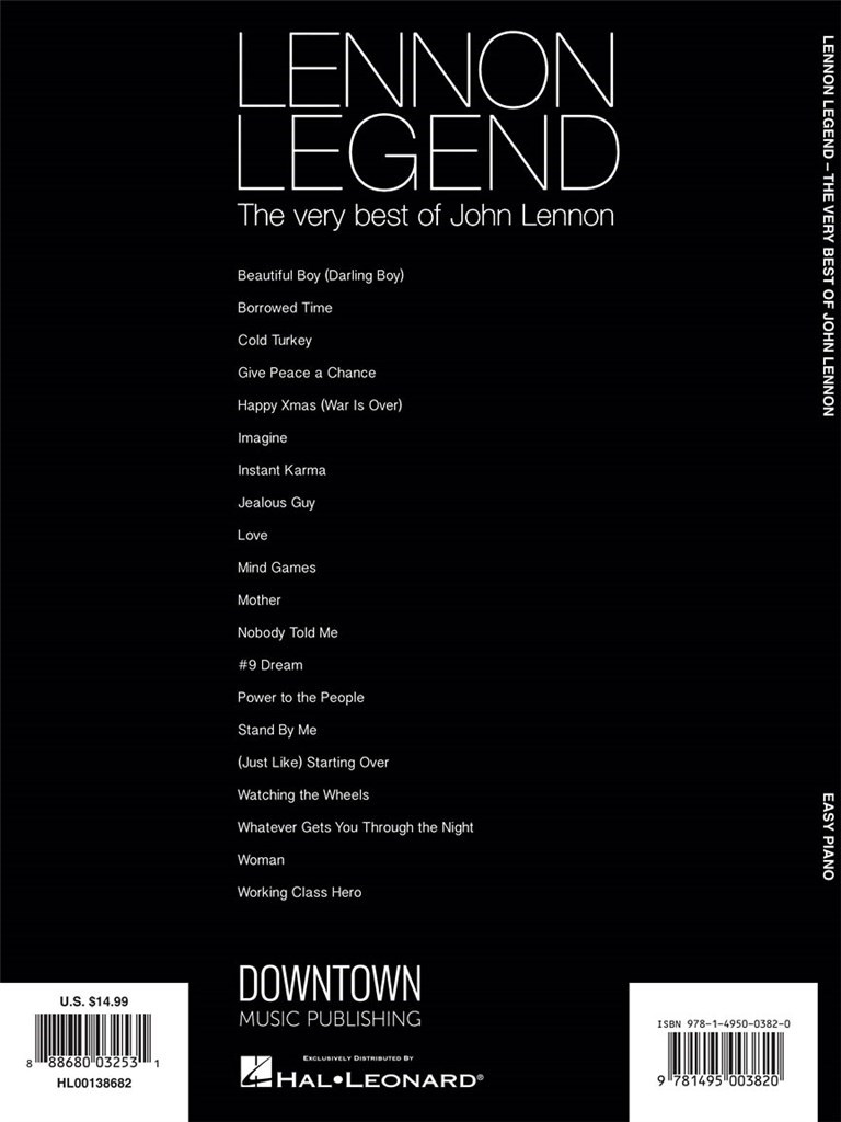Matching folio to the John Lennon compilation album with 20 of his best, including: Beautiful Boy (Darling Boy) · Give Peace a Chance · Happy Xmas (War Is Over) · Imagine · Instant Karma · Mind Games · Mother · Nobody Told Me · Stand by Me · (Just Like) Starting Over · Watching the Wheels · Woman · Working Class Hero · and more.