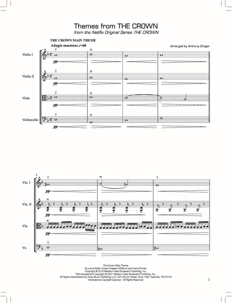 Tirés de la sensationnelle série de Netflix sur la famille royale britannique, voici deux des thèmes les plus populaires arrangés pour quatuor à cordes par Anthony Gröger, avec de riches textures et des mélodies envoûtantes.
