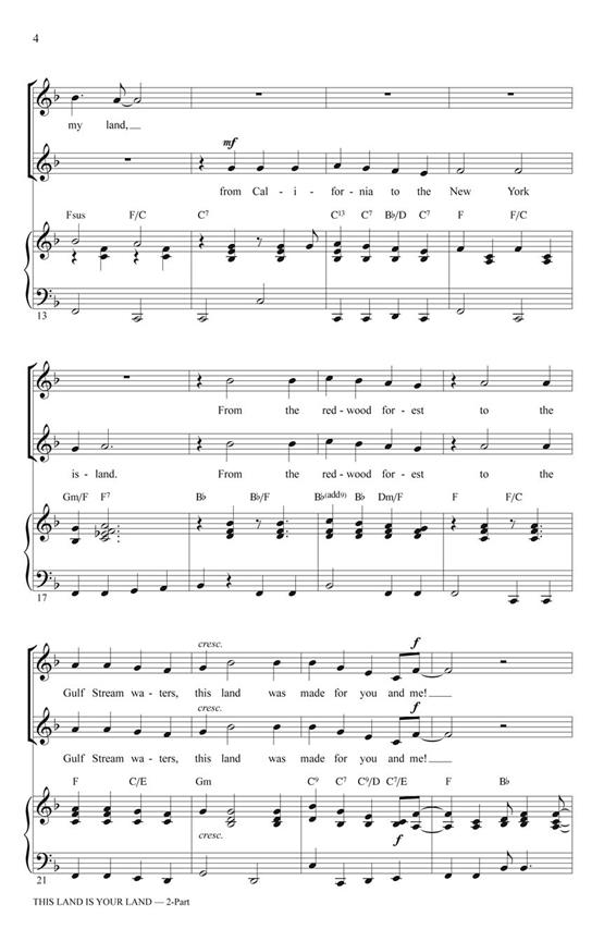Elle a été chantée par tout le monde, de Bruce Springsteen au Mormon Tabernacle Choir en passant par des millions d’écoliers américains ! Cette chanson légendaire a été écrite en 1940 par le troubadour américain Woody Guthrie, dont le centenaire a été célébré en 2012, et cet univers pour les jeunes chorales, avec une partie harmonieuse de style chanson en couple, est facile à apprendre et agréable à chanter. Découverte niveau 1.